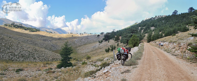 Çamkuyuları'ndan sonra Yakaçiftlik Köyü'ne aracımızı bırakarak, kamp malzemelerimizi bisikletlerimize yükleyerek yola koyuluyoruz. Köyden çıkarak Avlan Gölü kıyısından Finike istikametine doğru ilerliyoruz. İki gündür şans bizden yana ki, hava kapalı ve serin hava ile birlikte rahatlıkla bisiklet binebiliyoruz. Bulutlar henüz yüksekte olsalar da her an inebilir ve yağmura yakalanabiliriz. Bir taraftan gideceğimiz güzergahı gözlerken, bir yandan da seri bir şekilde ilerlemeye devam ediyoruz. Göltarla Köyü içerisinden Çığlıkara Tabiatı Koruma Alanı'na giriyoruz. Göltarla içerisinden başlayan tırmanışla yükselirken, gökyüzünde ki bulutlarda bir taraftan alçalarak yağmuru toplamaya devam ediyor. Bir süre daha tırmandıktan sonra çiseleyerek başlayan yağmur şiddetini artırarak devam ediyor. Bir kaya oyuğunu kendimize siper ederek yağmurdan korunmaya çalışıyoruz. Ahmet'in arkadamızda ki parmak kalınlığında ki kaya yarığında yuvalanmış olan akrebi fark etmesi ile oradan uzaklaşmak zorunda kalıyoruz. Doğru düzgün başka da sığınacak ortam olmadığından yağmurluklarımızı giyerek yağmur altında bisiklet binmenin keyfine varıyoruz. Zemin sert ve taşlık olduğundan dolayı yağan yağmur ilerlememize engel olamıyor. Bir sere daha tırmandıktan sonra (yaklaşık 17. kilometrelerde) yol üçe ayrılmaktadır. Sağa giden yol, yukarı da görülen demir direklerin olduğu, muhtemelen verici gibi bir yer olan bölgeye gitmekte, ortada ki yol ise bizim rotamızda işaretlediğimiz güzergah üzerinde ilerlemekte ve en solda ki bölüm ise Üçoluk Yaylası üzerinden devam etmektedir. Her ne kadar orta ki yol rotamız olsa da, ilerilerden duyduğumuz iş makinalarının sesinden de anladığımız üzere, yol üzerinde düzeltme çalışmaları yapılmakta. Dolayısıyla yağan yağmurla birlikte kazılan yol çamurdan dolayı gidilemeyecek bir hal almıştır. Mecburen Üçoluk tarafına doğru tırmanışa devam ediyor ve ilerliyoruz. Yol yapısından da anlaşılacağı üzer bu taraf uzun süredir kullanılmamış ve gelen giden olmamış. Sedir ağaçlarının çoğaldığı, bakir ormanlık alan içerisinde ilerleyişimize devam ediyoruz. Hiç bitmeyen rampalar ve virajlarla ilerleyişimiz sürerken, sağımızda ki düz bir alanda yatmakta olan yabani domuz sürüsü, büyük bir gürültü ile önümüzden yukarıya doğru koşmaya başlıyor. Büyük bir aile oldukları anlaşılıyor. Boy boy sıralanarak ardı arkası kesilmek bilmeden devam ediyorlar. Yabani domuz saldırılarının ve yaralanmalarının oldukça tehlikeli ve ölümcül yaralanmalara neden olabileceğini biliyorum. Staj dönemimde domuz saldırısından yaralanmış olan bacağını diktiğimiz genç gözümün önüne geliyor. Neyse ki hiç birisi bizden tarafa yönelmiyor ve korkulacak bir durum gelişmiyor. Böyle karşılaşmalarda soğukkanlılığı elden bırakmamak gerekiyor. Domuzlar yapı itibariyle boyunlarını çok fazla bükemediklerinden, sağa, sola ve geriye doğru hamlelerde çok çevik değillerdir. Bu yüzden herhangi bir saldırı yada size yönelmesi durumunda, mümkün olan bir ağaca yada onun çıkamayacağı bir yüksekliğe çıkmak, zigzaglar çizerek koşmak ve onun dönemeyeceği geldiği, istikamete doğru yönelmek, kurtuluş için bir çare olabilmektedir. Neyse domuz sürüsünü sorunsuz atlattıktan sonra, orman içerisinde ki bu tür risklerden biraz daha uzaklaşmak adına, yolumuzun ağaçlardan uzaklaştığı yükseklerde bir yerde kamp atmak üzere ilerlemeye devam ediyoruz. Bu bölgede su sıkıntısının olduğunu öğrenmiştik ancak, bir umut ile hem suyu bulmak hemde uygun bir kamp alanı bulmak için, tükenmek üzere olan enerjimizle basıyoruz pedallara. Üçoluk bölgesine geldiğimizde yolun 5-10 metre sağında ki çeşmeyi görünce hemen kendimizi atıyoruz yanıbaşına. Buz gibi suyuyla elimizi yüzümüzü yıkayarak serinliyor ve bir an dinleniyoruz. Bir gün öncesinde su kıyısında ki kamp tecrübemizden sonra, bu gün ki kampımızı biraz daha ilerleyerek su bölgesinden uzak bir alana kurmayı planlıyoruz. Tırmanış devam ediyor ve ağaçlar bitiyor. Açık bir alanda yolun genişlediği bir noktada kamp atmayı uygun buluyoruz. Çevre de yol kenarına kurmaktan başka uygun bir yer olmadığından, olası risklere karşılık, yolun her iki yönünü de taş ve ağaçlarla kapatıyor, bisikletlerin bir tanesini bir tarafa, diğerini diğer tarafa koyarak, sabaha kadar ışıklarını yanık bırakıyoruz. Çadırlarımızı kurduktan sonra hemen yemek hazırlıklarına başlıyor ve sıcak bir çay eşliğinde yorgunluk atıyoruz. Ne yazık ki güzel Samanyolu fotoğrafları çekebilme umuduyla çıktığım bu turun ikinci gününde de hava kapalı ve puslu. Yaktığımız küçük kamp ateşi eşliğinde çaylarımızı yudumlarken, günün ve yarının kritiğini yapıyoruz. Bugün tamamen tırmanış yapmış ve oldukça yorulmuştuk. Yarın Çığlıkara Bölgesine ulaşmak, kampı erken atarak, ortamın ve doğanın keyfine varmak üzere plan yapıyoruz.