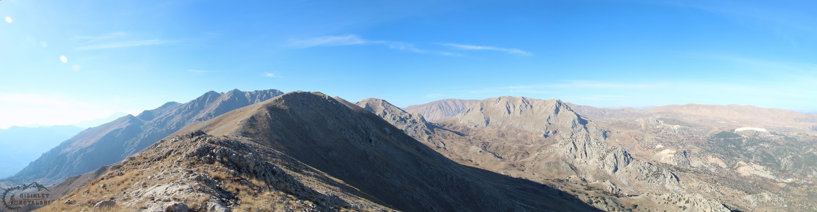 Sırt hattına ulaştığımızda Güneybatı tarafına yönelerek, sağ tarafa doğru dikleşerek uçuruma dönüşen çizginin üzerinde ki rotada yürümeye devam ediyoruz. Burada belirgin bir patika görülmektedir. İki taraflı panaromik bir manzara eşliğinde zirve yolunda ilerleyişimiz devam ediyor. Zaman zaman kısa süreli diklenmeler olsa da, genel olarak rahat bir yürüyüş imkanı bulunmaktadır. Deniz yönüne bakıldığında sıralanmış olan Beydağları puslu bir hava da silüet şeklinde görülebilmektedir. Uzaklarda ki Tahtalı ve Ovacık Dağları yanı sıra, Sarıçınar, İnceeriş, Çalbalı ve Sivridağ manzarası oldukça keyifli bir görüş sunmaktadır. Arkamızda kalan Antalya yönünde ise Sarpkatran, Geyiksivrisi ve Karadağ görülebilmektedir. Zaman zaman ise, Suluandız, Avlağı, Katran, Kızlar ve Güllük Dağlarını görebilmek de mümkün olmuştur. Batı yönünde ise, Tunç, Bakırtepe, Eren ve Kuruan Dağları görüş alanına girmektedir.